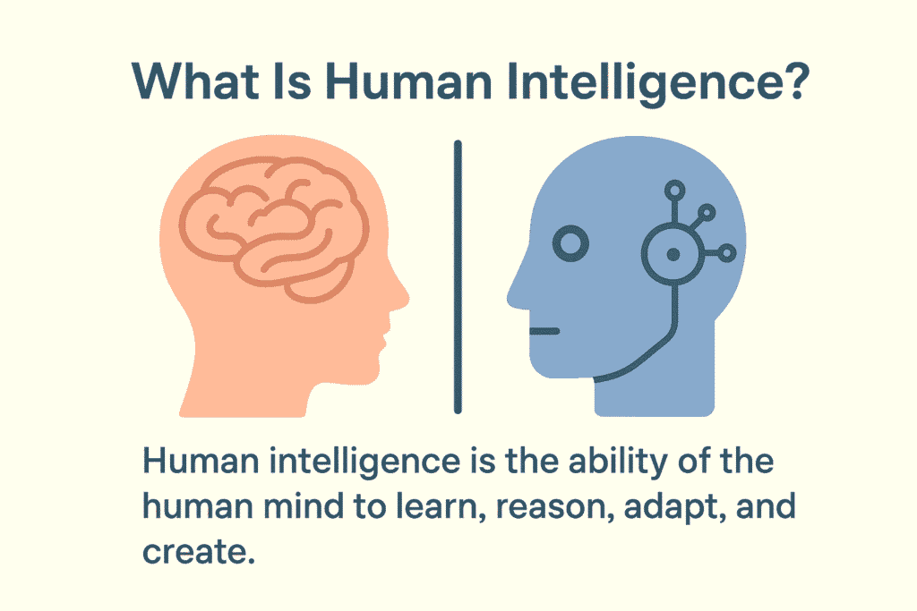 Human intelligence is the ability of the human mind to learn, reason, adapt, and create. Unlike AI, human intelligence is influenced by emotions, experiences, morality, and creativity — traits that machines can only imitate. Humans use critical thinking, empathy, and intuition to make decisions that go beyond data or logic. From artistic expression and innovation to emotional understanding and ethical judgment, human intelligence reflects the depth of consciousness that no algorithm can fully replicate. It’s this unique combination of logic and emotion that continues to set humans apart from machines.
